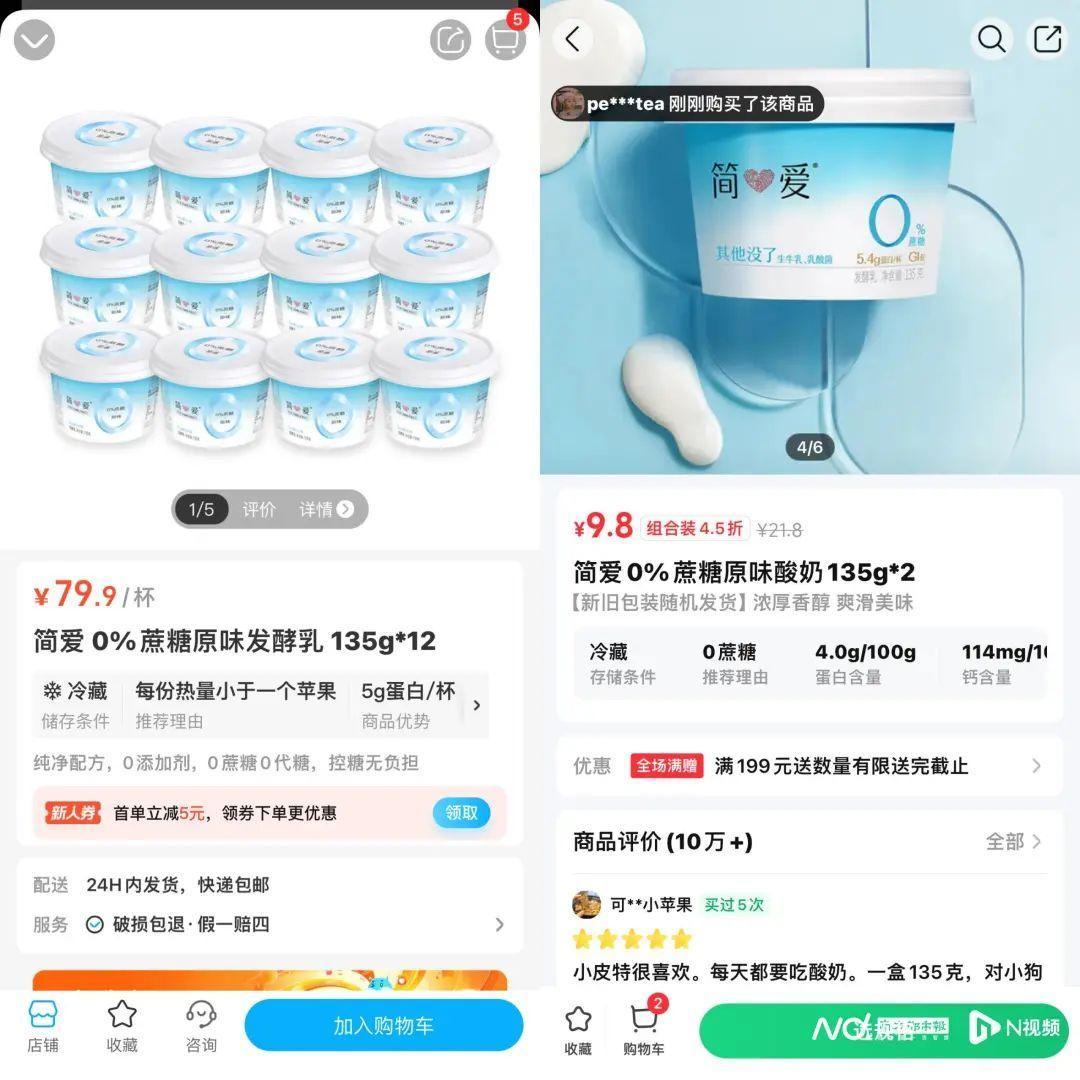 同日,南都湾财社记者查询盒马、朴朴、叮咚买菜这三家零售电商平台发现,叮咚买菜没有销售简爱0%蔗糖原味酸奶,朴朴和盒马皆有销售,分别为2瓶135g产品组合售价9.8元、12瓶135g产品组合售价79.9元。盒马客服表示酸奶为最新一批次产品,朴朴客服回应,该商品有多个日期批次,下单后系统会分配再核实购买的具体批次。
